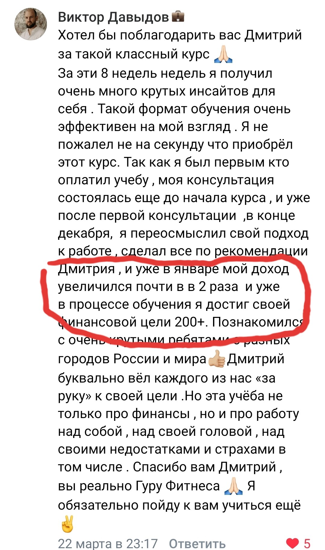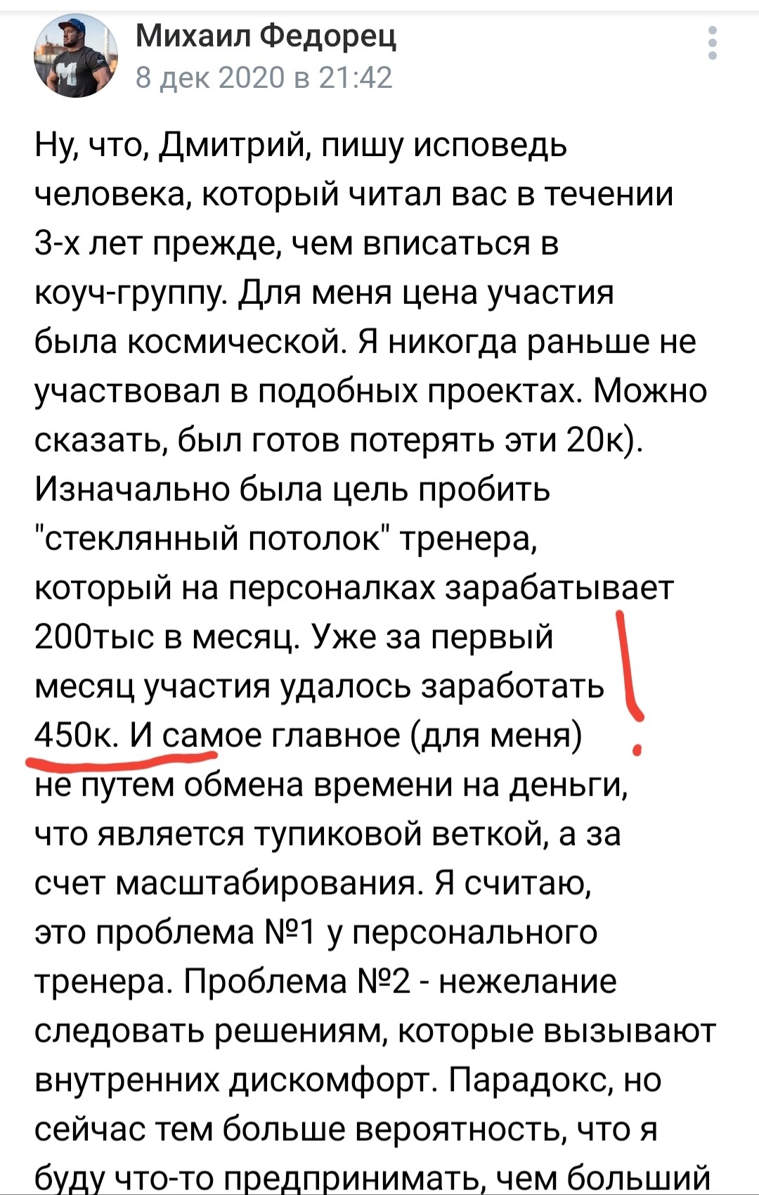 До обучения у Дмитрия я был очень неуверенным в себе тренером, зарабатывал 10-15 т.р. в месяц и подумывал уходить работать на завод. После тренинга у меня стало столько клиентов, что я уже через месяц ушел на аренду и начал зарабатывать 100 000 р."